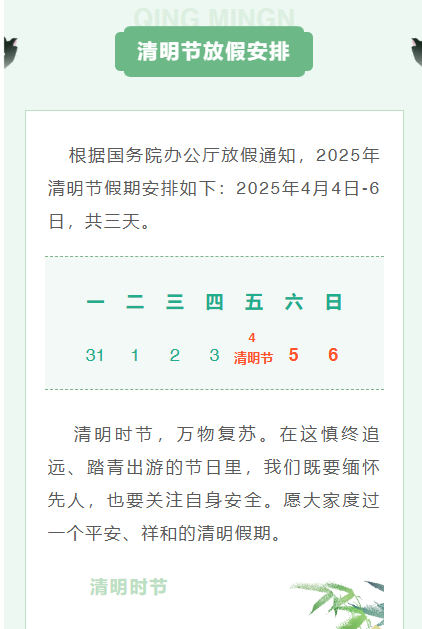 2025年 清明节放假通知