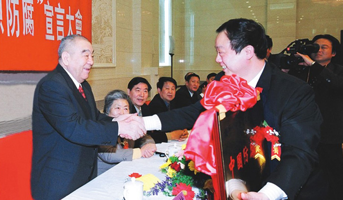2002年3月26日全国人大常委会副委员长布赫在北京人民大会堂交“中国防腐之乡”匾牌颁发给了中共长垣县委书记刘森